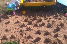 На прогулке малыши с удовольствием строят замки из песка.