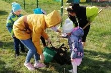 Сотрудники детского сада вместе с воспитанниками посадили саженцы рябины.
