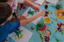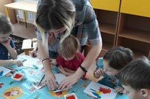 Рисование в нетрадиционной технике, с помощью пальца. Дети закрепляли умение размещать на листе бумаги детали своей работы.