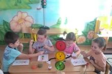 Дети продолжали овладевать навыками вырезания кругов и овалов из квадратов и прямоугольников. Выкладывать из полученных фигур узор.