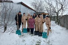 Юнармейцы школы оказали помощь по очистке территории от снега ветерану педагогического труда, маме участника СВО Кузмичёвой Татьяне Владимировне.