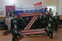 Сегодня руководитель ВПК "Каскад" ЗудинаА.Г. совместно с Левашевским СДК провел с участниками ВПК "Каскад" беседу о СВО на Донбасе. Составили из объемной георгиевской ленточки и тканей триколора слово ZA ( за мир, за победу)