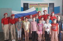 В пришкольном лагере к Дню Росси провели флешмоб "Гимн России". Учащиеся исполнили куплет Гимна РФ.
