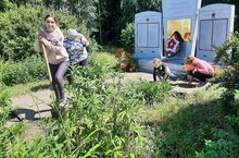 Воспитанники пришкольного лагеря "Муравейник" очистили от травы цветники и дорожки у памятника павшим в ВОВ.