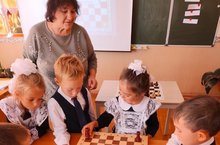 В рамках внеурочной деятельности учащиеся 1 класса с большим интересом ходят на занятия в кружок "Шахматы для всех". Руководитель Хайбуллина Г.Д.