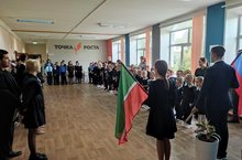 Право поднять флаг было предоставлено ученикам 10 класса Щурихиной Виктории, Муратову Булату. Поднятие флагов сопровождалось исполнением государственных гимнов Российской Федерации и Республики Татарстан. Директор школы Халитов Риналь Ильсурович поздравил всех с началом новой учебной недели, пожелал ребятам успехов и хороших отметок.