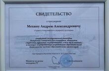В Казани прошло награждение обладателей специальной государственной стипендии Президента Республики Татарстан. Одним из обладателей стал и студент аграрного колледжа Андрей Мехин. Он учится на третьем курсе по специальности «Механизации сельского хозяйства». Андрей является активным членом студенческого самоуправления колледжа, принимает участие в конференциях, конкурсах и форумах, его портфолио состоит из множества дипломов, грамот и благодарственных писем. Поздравляем и желаем дальнейших успехов и побед!