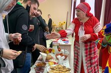 В конце встречи всех гостей ожидало традиционное чаепитие с блинами. -
