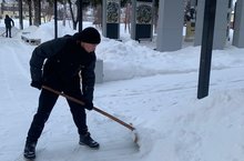 А наши студенты сразу же после зимних каникул проводят уборку снега в Парке Победы.