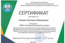 С 25 марта по 8 апреля 2019 года на базе ГАПОУ «Зеленодольский механический колледж» проводился конкурс методических разработок преподавателей электротехнических дисциплин ПОО Республики Татарстан «Дидактические принципы обучения электротехническим дисциплинам при подготовке специалистов по профессиям ТОП - 50». В конкурсе в 5 номинациях приняли участие 40 преподавателей ПОО Республики Татарстан. От нашего колледжа приняла участие преподаватель физики Ганеева Светлана Николаевна.