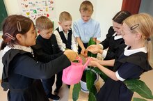 Учащиеся почтили память жертв и символически «напоили» цветы.