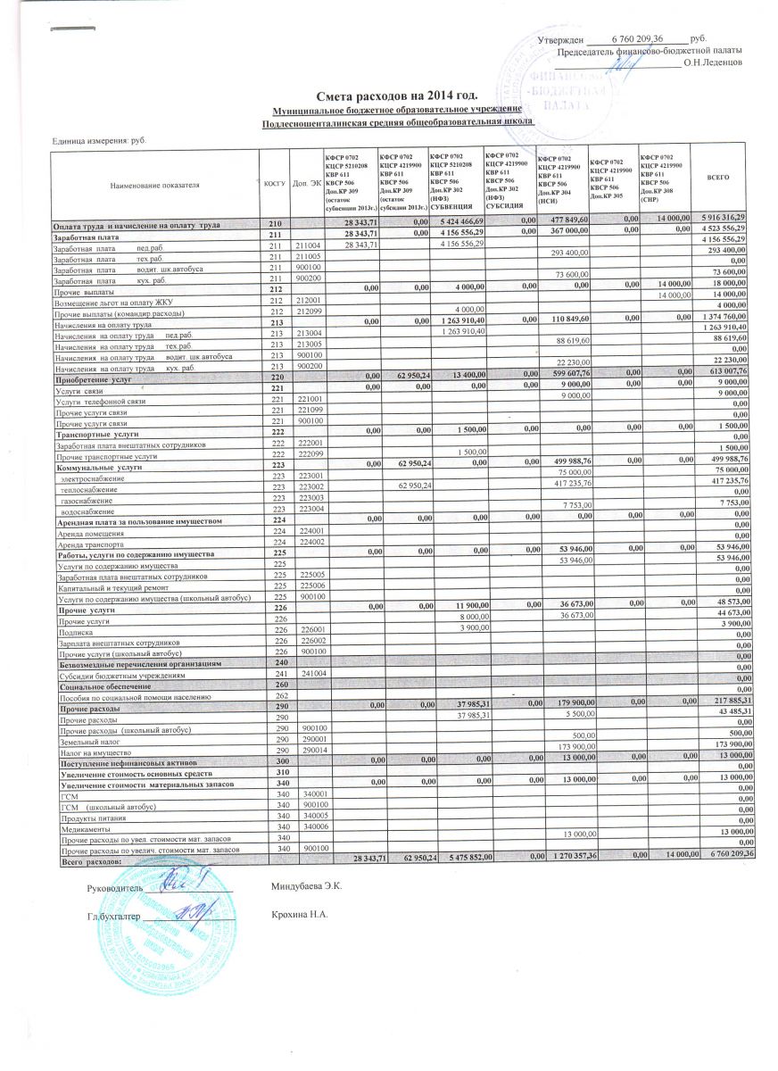 - Смета расходов на 2014 г.