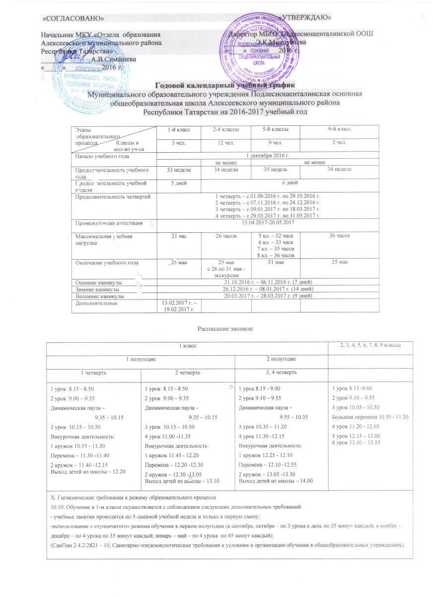 - Годовой календарный учебный график на 2016 - 2017 учебный год
