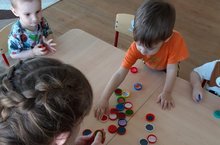 В первой группе раннего возраста «Лучики» дети продолжают знакомиться с тактильными крышечками. С помощью ощупывания изучают различные тактильные поверхности, подбирают парные крышечки: это набор крышечек с различными поверхностями (наждачная бумага, губка для мытья посуды, гофрированный картон, ткань различной структуры т.п.)....