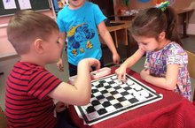 В нашей средней группе №2 «Радуга» дети очень любят играть в шашки. Игра настолько привлекает детей, что играют двое, а несколько человек сидят вокруг и «болеют» за своего друга. ..