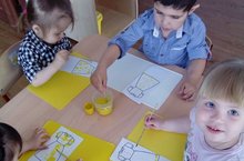 В преддверии празднования «Дня Победы», дети второй группы раннего возраста «Сказка» рисовали одноразовыми вилками, отпечатками из овощей «Праздничный салют».