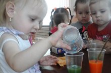 В рамках недели «Волшебница вода» ходе совместной деятельности педагога и воспитанников во второй группе раннего возраста №2 «Светлячки» провели опыт с окрашиванием прозрачной водички в разные цвета. ....