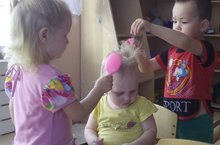 Вчера в гости к ребятам пришла кукла Таня, она пожаловалась деткам, что ее прическа совсем испортилась, и мы с ребятами предложили ей пройти в нашу парикмахерскую, где мастер поправит ей прическу.