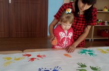 1 июня, в Международный День защиты детей, в группе раннего возраста №1 «Затейники» дети совместно с воспитателями Арслановой А.И. и Турсен Т.А. рисовали Цветок Дружбы в нетрадиционной технике рисования- отпечатками ладошек.