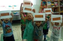 В младшей группе №1 «Капитошки» в рамках тематической недели «Праздники мая» по образовательной области «Художественно-эстетическое развитие» была проведена непосредственно-образовательная деятельность на тему «Георгиевская лента».
