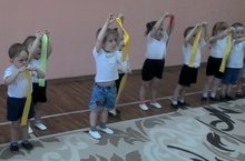 16,18 мая 2017 года во вторых группах раннего возраста №2 «Радуга» и №1 «Сказка» на занятиях по физической культуре проходило знакомство со спортивным атрибутом - ленточкой.