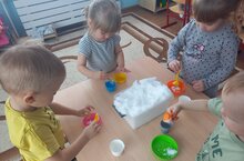 В ходе занятия ребята второй группы раннего возраста «Звездочки» провели опыты со снегом. Дотронувшись до снега, дети почувствовали, что он холодный; попробовали разложить снег по формочкам и увидели, что из него можно что-то слепить; в группе тепло - снег растаял. Такие несложные опыты позволили детям расширить знания о снеге и его свойствах....