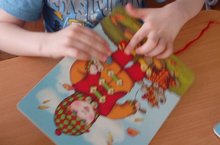 Уровень развития «умелости рук» - один из показателей интеллектуальной готовности к школе и именно в этой области дошкольники испытывают серьёзные трудности. Поэтому с детьми младшей группы «Капитошки» мы часто используем игровое пособие «Шнуровка»...