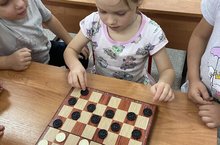 В нашей старшей группе «Непоседы» дети очень любят играть в шашки. Игра настолько привлекает детей, что играют двое, а несколько человек сидят вокруг и «болеют» за своего друга....