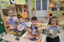 В объединении «Экология. Дети. Творчество» (педагог Шалкинская Н.А.) сделали космический талисман из картона и пластилина к 65-летию космоса. Дети решили, что в центре композиции будет сама ракета. Основу вырезали из плотного картона. Из пластилина слепили ракету с иллюминатором. Рядом вылепили несколько планет, а звёзды сделали из небольших шариков пластилина и приплюснули их на картон. Талисман получился красочным и ярким. Дети забрали талисманы домой, чтобы показать родителям.