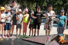 Чем дальше дата памяти и скорбиУходит в глубь истории страны,Тем ярче и весомей подвигСолдата, не пришедшего с войны.В истории нашей страны есть особые даты. Одна из важнейших – 22 июня День памяти и скорби по всем погибшим в годы Великой Отечественной войныВ этот день мы можем лишь вспомнить всех тех, кто погиб, защищая Родину, кто был замучен фашистами, кто погиб от голода и холода, о том, как 80 лет назад страна услышала голос Левитана, объявивший о начале войны.Коллектив Центра детского творчества совместно с ребятами из пришкольного лагеря приняли участие во Всероссийской акции «Свеча памяти» под девизом: «Не гаснет памяти свеча».