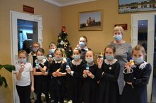 Для ребят была проведена экскурсия по творческой мастерской и временным выставкам «В гостях у новогодней сказки», «Крылатая пехота на острие удара», «Алексеевский район. Вехи истории». Дети узнали историю празднования Нового года, историю появления рождественских открыток и ёлочных игрушек.