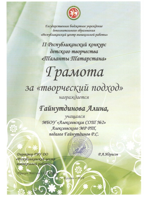 ♦ Гайнутдинова Алина, Грамота за творческий подход
