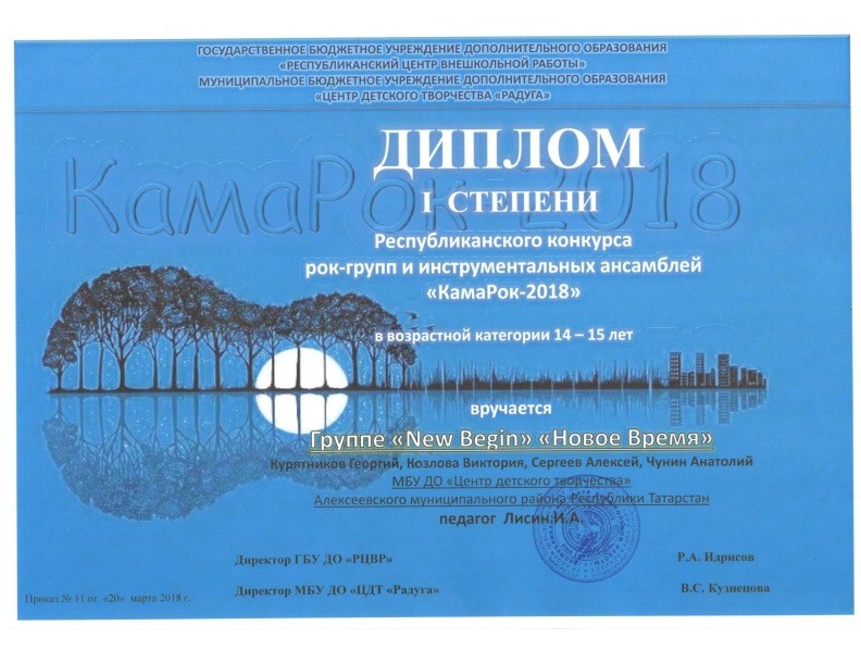 ► Республиканский конкурс "Минута славы", группа "Новое время", 2 место, ноябрь 2017
