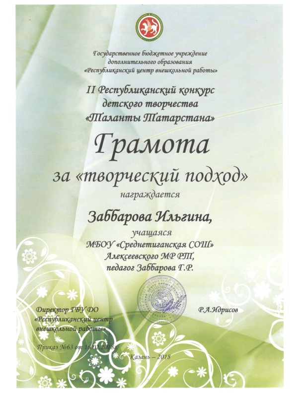 ♦ Заббарова Ильгина, Грамота за творческий подход