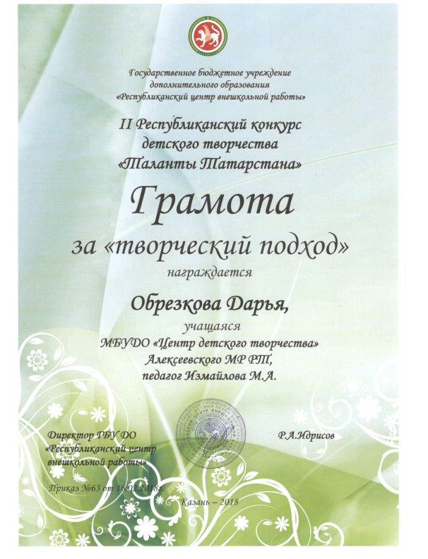 ♦ Обрезкова Дарья, Грамота за творческий подход