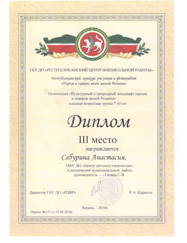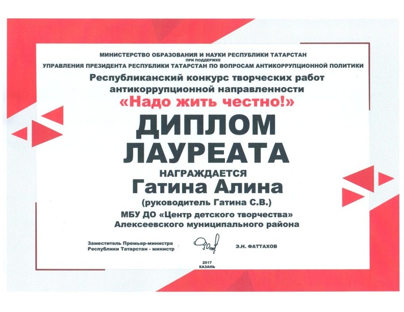♦ Гатина Алина, Грамота за творческий подход