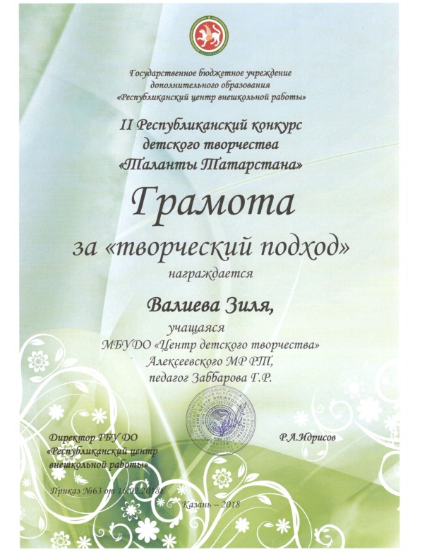 ♦ Валиева Зиля, Грамота за творческий подход