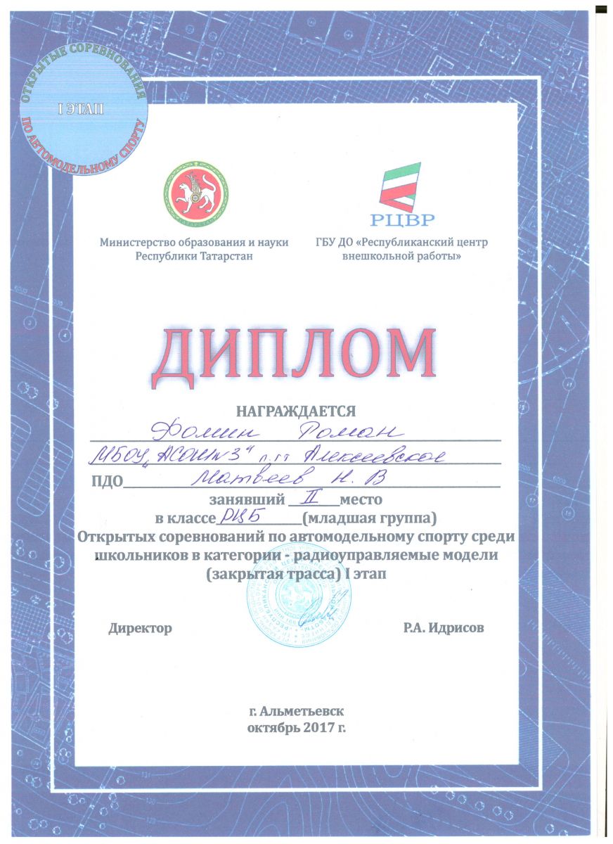 ► Сетевые отборочные соревнования по стандартам JuniorSkills, Былинцев Алексей, 2 место, ноябрь 2017