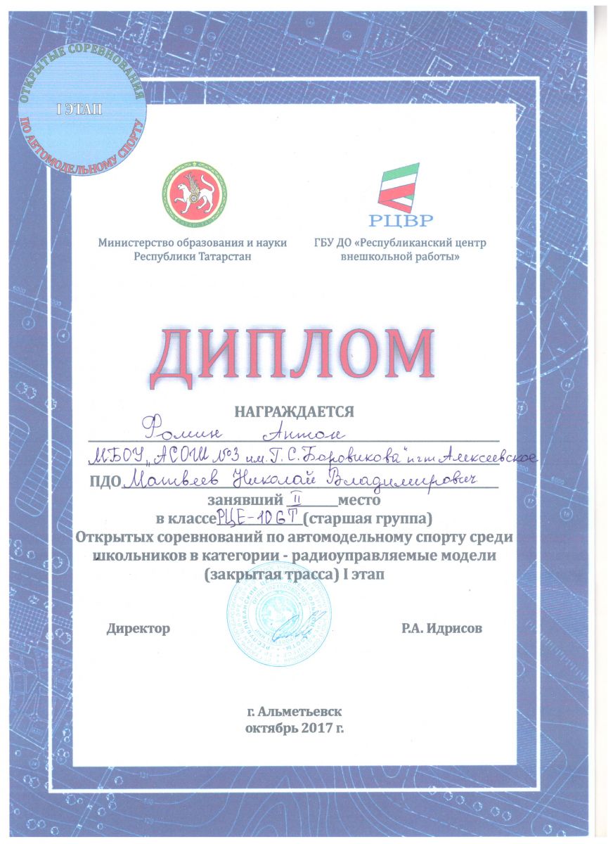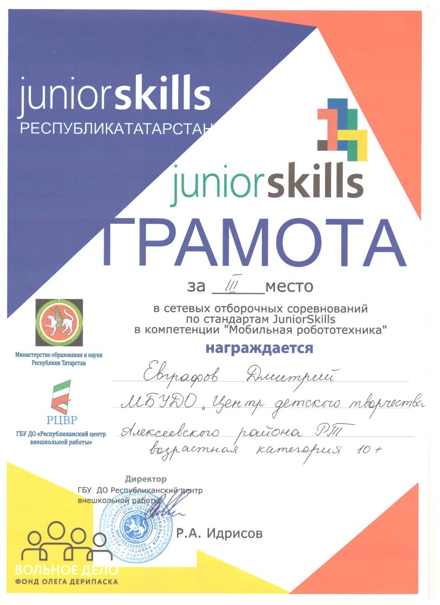 ► Региональный чемпионат JuniorSkills Республики Татарстан, Былинцев Алексей, 2 место, февраль 2018