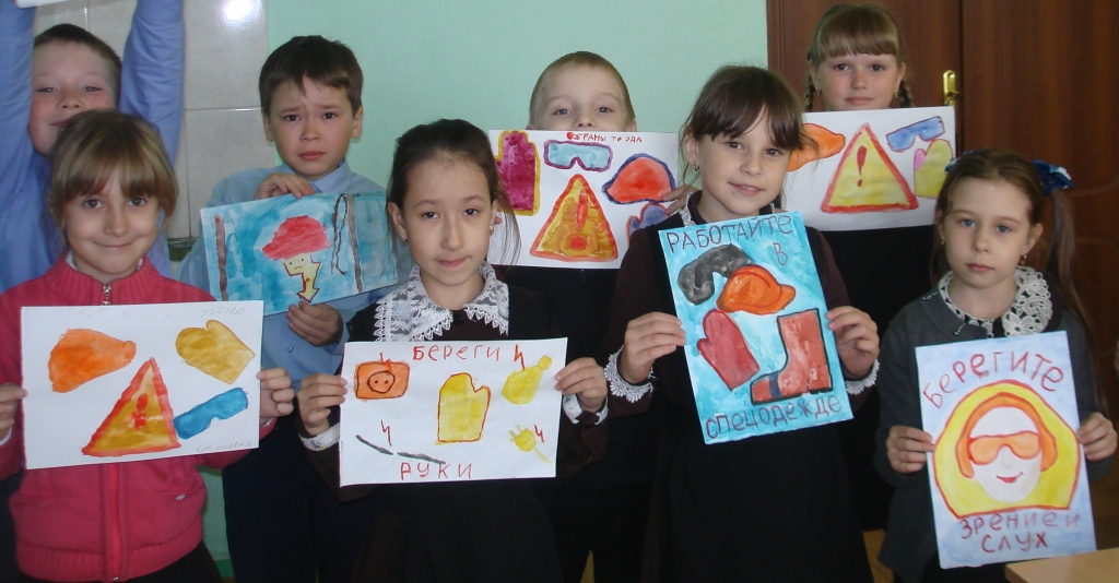Руководитель объединения «Семицветик» Гатина С.В. с обучающимися провела беседу об охране труда, дети узнали, что в каждой профессии есть свои правила, строитель должен защищать голову каской, электрик не должен выходить на работу без резиновых перчаток, на шумном производстве рабочий должен защищать глаза и уши. После беседы воспитанники нарисовали мини-плакаты по охране труда и оформили выставку, чтобы все знали, и могли применить эти правила именно там, именно тогда, когда нужно.