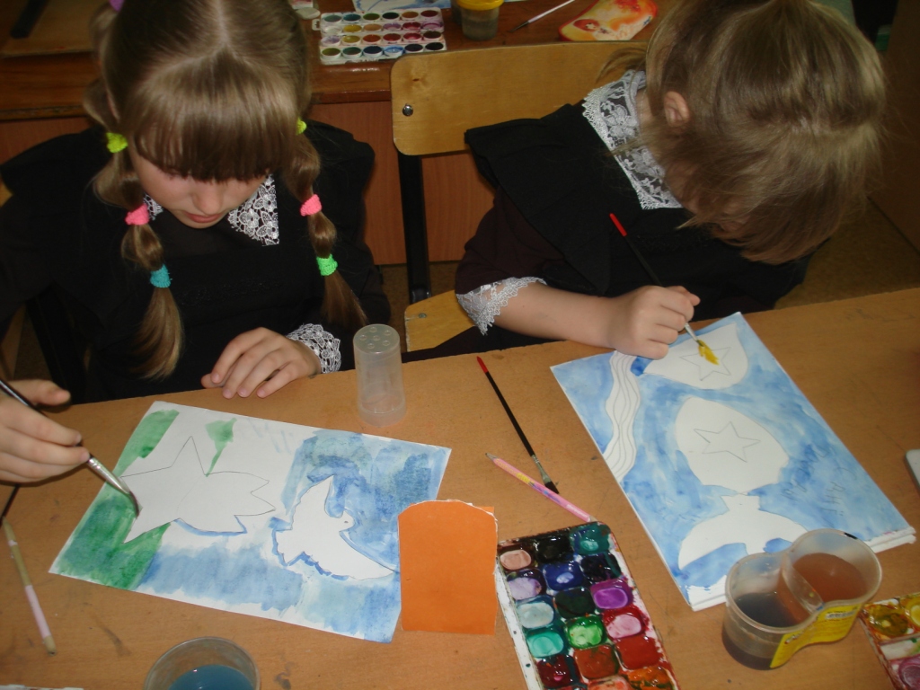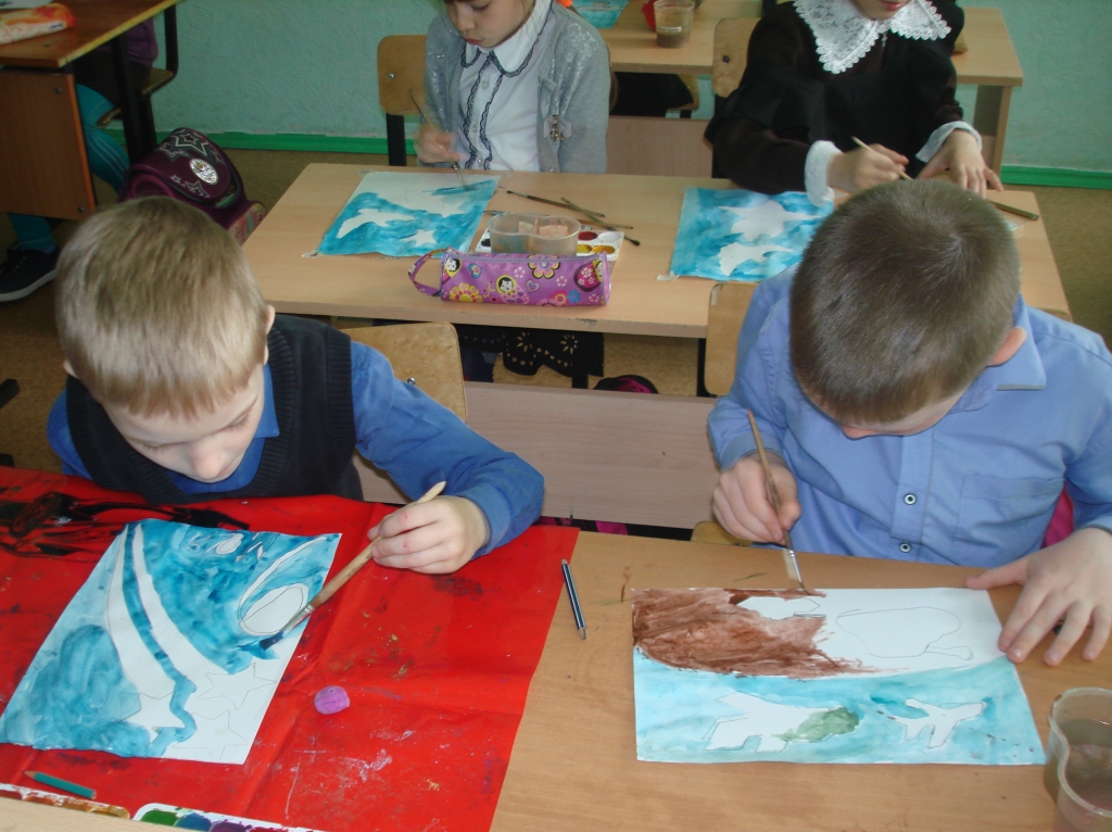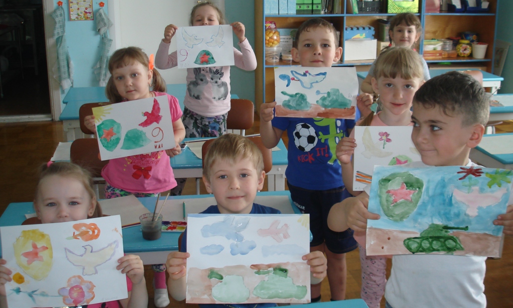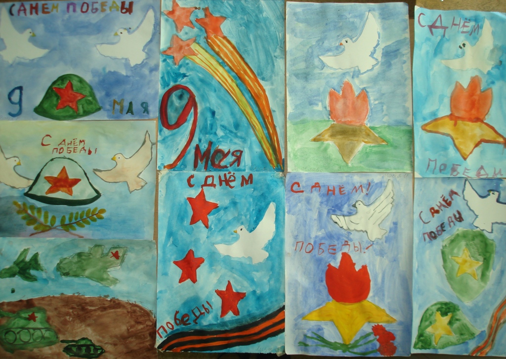 После беседы дети нарисовали рисунки, посвященные празднику, и оформили выставку.