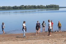 Сегодня с участниками лагеря "Мозаика" была проведена экскурсия на берег реки Кама. Главная цель нашей экскурсии было наблюдение за деревьями и растениями, растущими у реки, за сезонными изменениями в природе. Но в ходе наблюдений и бесед были задеты и другие важные вопросы. Дети вспомнили название реки, с большим интересом наблюдали за её течением, рассмотрели деревья, растущие у берега. Вспомнили о том, как происходит круговорот воды в природе. А также ребята порассуждали на тему: «Почему вода в реках становится грязной? Как сделать реку чистой?». Поиграли на поляне у реки в подвижные игры. Весело и интересно провели время.