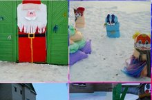На территории школы педагогический коллектив совместно с учащимися школы создали сказочных героев. А главный Дед Мороз всех встречает у дверей школы.
