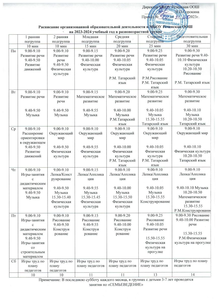 Расписание образовательной деятельности ДО на 2023-2024 учебный год