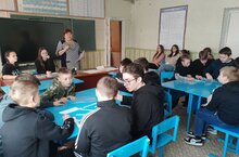 В рамках мероприятий, посвященных военно-патриотическому воспитанию в школе классным руководителем и ЗДВР Сапожниковой Н.Ю была проведена викторина с учащимися 5-9 классов.