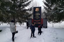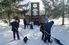 Ученики 6 класса нашей школы под руководством учителя физической культуры Бикеева А.Н. организовали очистку памятника павшим воинам в Великой Отечественной войне от снега и прилегающей к ним территории.