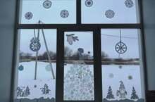 Окна школы украсили вытынанки, белоснежные снежинки, сюжетные картинки, выполненные своими руками. Ребята проявили фантазию в оформлении окон, и школа будто погрузилась в сказку.