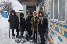 После снегопада юнармейцы школы помогли пожилой жительнице в расчистке снега около двора и во дворе дома. А также почистили территорию около памятника на территории школы.