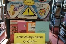 В рамках месячника, посвященного Дню охраны труда в школьной библиотеке была оформлена выставка книг, публикаций на тему "Это должен знать каждый!" Книжная выставка освещает вопросы защиты и гарантий прав работников, контроля в сфере охраны труда. Для читателей представлены материалы из трудового законодательства (Трудовой кодекс РФ, ГОСТы, правила, инструкции по охране и безопасности труда), учебная литература ( по охране труда, основам безопасности жизнедеятельности).