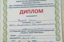 21 апреля 2018 года на базе МБОУ Базарной-Матакской гимназии имени Наби Даули Алькеевского МР РТ прошел очный тур V Открытой научно - исследовательской конференции учащихся имени Наби Даули. Ученица 10 класса #РомодановскойСОШ занял 1 место в секции "Математика"Поздравляем!!!